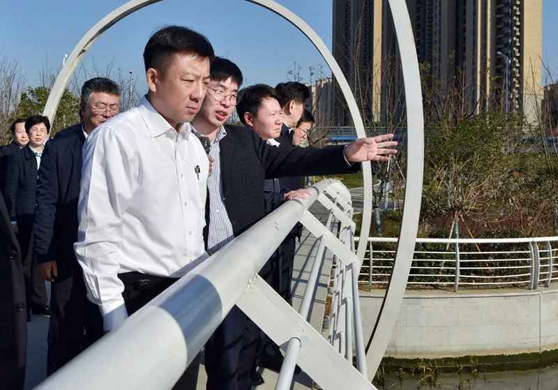 在公园里,杜小刚走上人行景观桥,俯身查看河道水质,环顾四周景观,看到河岸对面居民住宅林立,他表示作为一个百姓“家门口”的滨水公园,项目建设得好,更有惠民成效和示范意义,要融入海绵城市理念,注重休闲、文化、体育等功能的复合,切实提升市民群众的感受度和参与感。